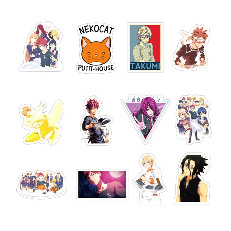 10 Вт, 30 Вт, 50 шт.упак. короткая футболка с героями из японского аниме еда войны! Shokugeki Нет Сома наклейки для скейтборд шлем компьютер ноутбук машины детские трусы-боксеры, детские игрушки