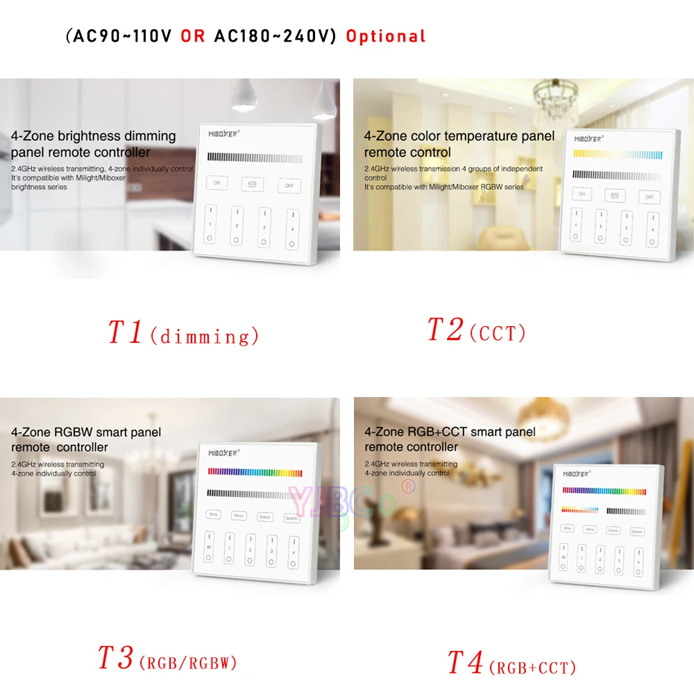 Обратите внимание:T1/T2/T3/T4Контроллер имеет110V/220VПо желанию, если вы не указываете, мы отправим вам Номинальное напряжение страны, в которой вы его приобрелиНазвание продукта: 4 зоны Яркость затемняя Смарт Панель пульт дистанционного управленияНомер модели:T1Входное напряжение:AC90 ~ 110V или AC180 ~ 240VРабочая температура: -20 ~ 60 ℃Частота передачи: 2400-2483,5 МГцМетод модуляции: GFSKМощность передачи: 6 дБмРасстояние управления: 30 мРазмер панели: 86*86 ммНазвание продукта: 4-Зона CCT Регулировка Смарт Панель пульт дистанционного управленияНомер модели:T2Входное напряжение:AC90 ~ 110V или AC180 ~ 240VРабочая температура: -20 ~ 60 ℃Частота передачи: 2400-2483,5 МГцМетод модуляции: GFSKМощность передачи: 6 дБмРасстояние управления: 30 мРазмер панели: 86*86 ммНазвание продукта: 4 зоны RGB/RGBW смарт Панель пульт дистанционного управленияНомер модели:T3Входное напряжение:AC90 ~ 110V или AC180 ~ 240VРабочая температура: -20 ~ 60 ℃Частота передачи: 2400-2483,5 МГцМетод модуляции: GFSKМощность передачи: 6 дБмРасстояние управления: 30 мРазмер панели: 86*86 ммНазвание продукта: 4 зоны RGB + CCT Smart Панель пульт дистанционного управленияНомер модели:T4Входное напряжение:AC90 ~ 110V или AC180 ~ 240VРабочая температура: -20 ~ 60 ℃Частота передачи: 2400-2483,5 МГцМетод модуляции: GFSKМощность передачи: 6 дБмРасстояние управления: 30 мРазмер панели: 86*86 ммРАЗМЕР T1 / T2 / T3 / T4