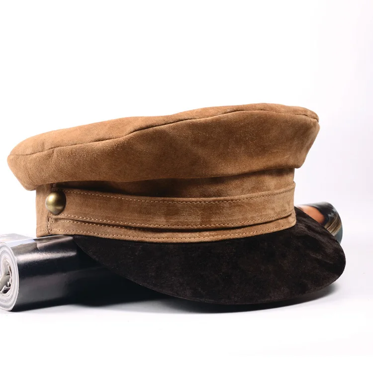 Модная военная шапка унисекс из натуральной кожи, Осенние матросские шапки для женщин и мужчин, Кепка с плоским верхом для женщин и мужчин, дорожная Кепка Кадета, Кепка Капитана