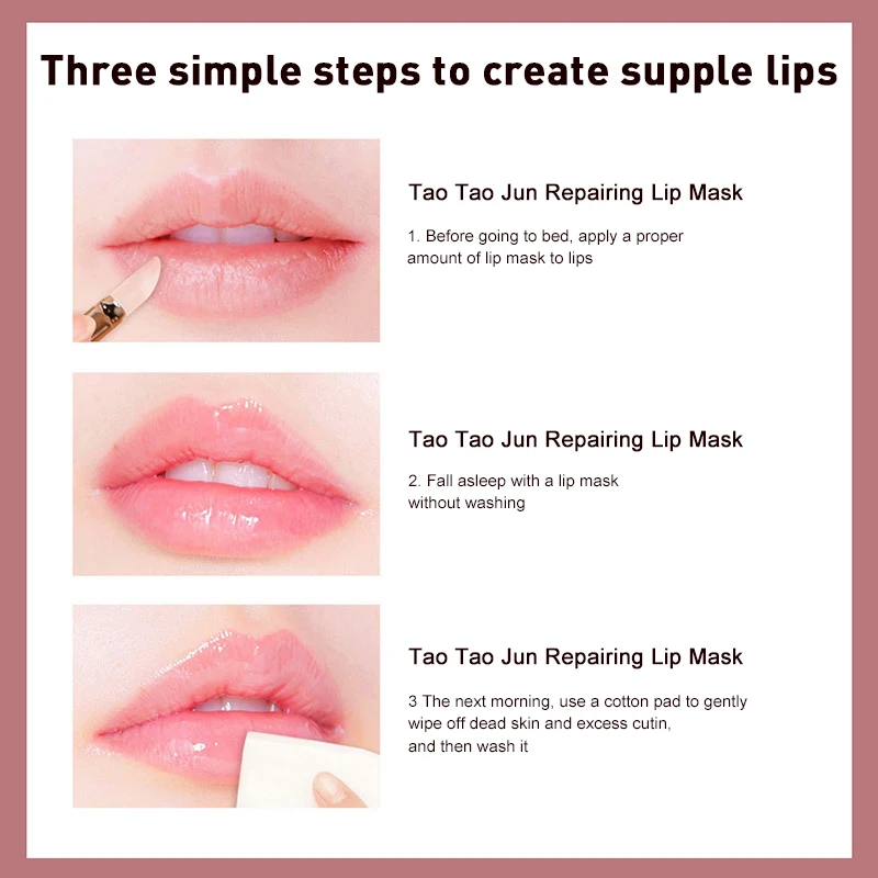 Использование: После ночной обработки лица Используйте скраб для губ, чтобы очистить омертвевшую кожу от губ, затем равномерно размазывайте необходимое количество этого продукта на губах перед сном. И Используйте ватный диск или бумажное полотенце, чтобы аккуратно вытереть оставшуюся маску для губ, когда вы просыпаетесь утром, а затем Вымойте губы чистой водой