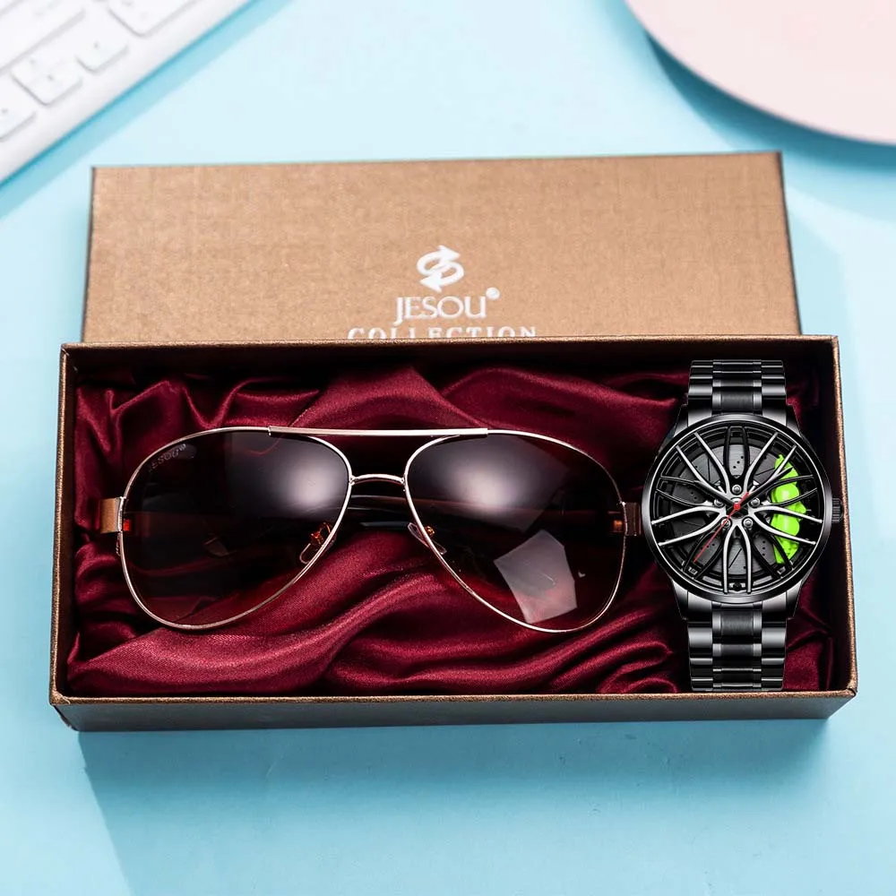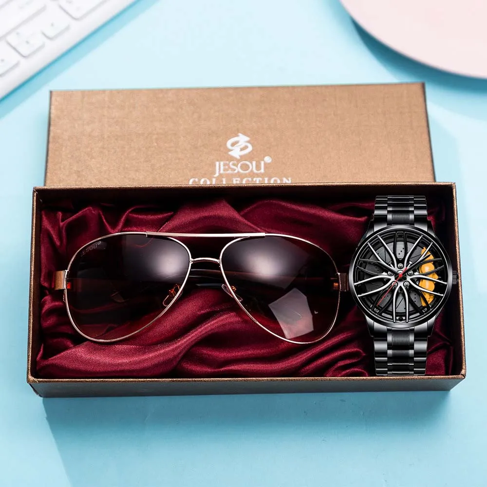 Часы наручные мужские кварцевые, спортивные, комплект из двух колес, подарок на праздник
