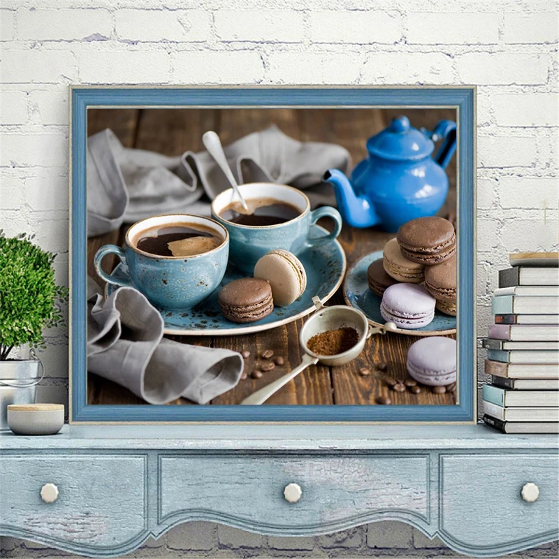 5D полноразмерная квадратнаякруглая алмазная живопись сделай сам, винтажная картина для натюрморта, чайной вечеринки, кофе, макарон, пианино, алмазная вышивка, настенное украшение для кафе