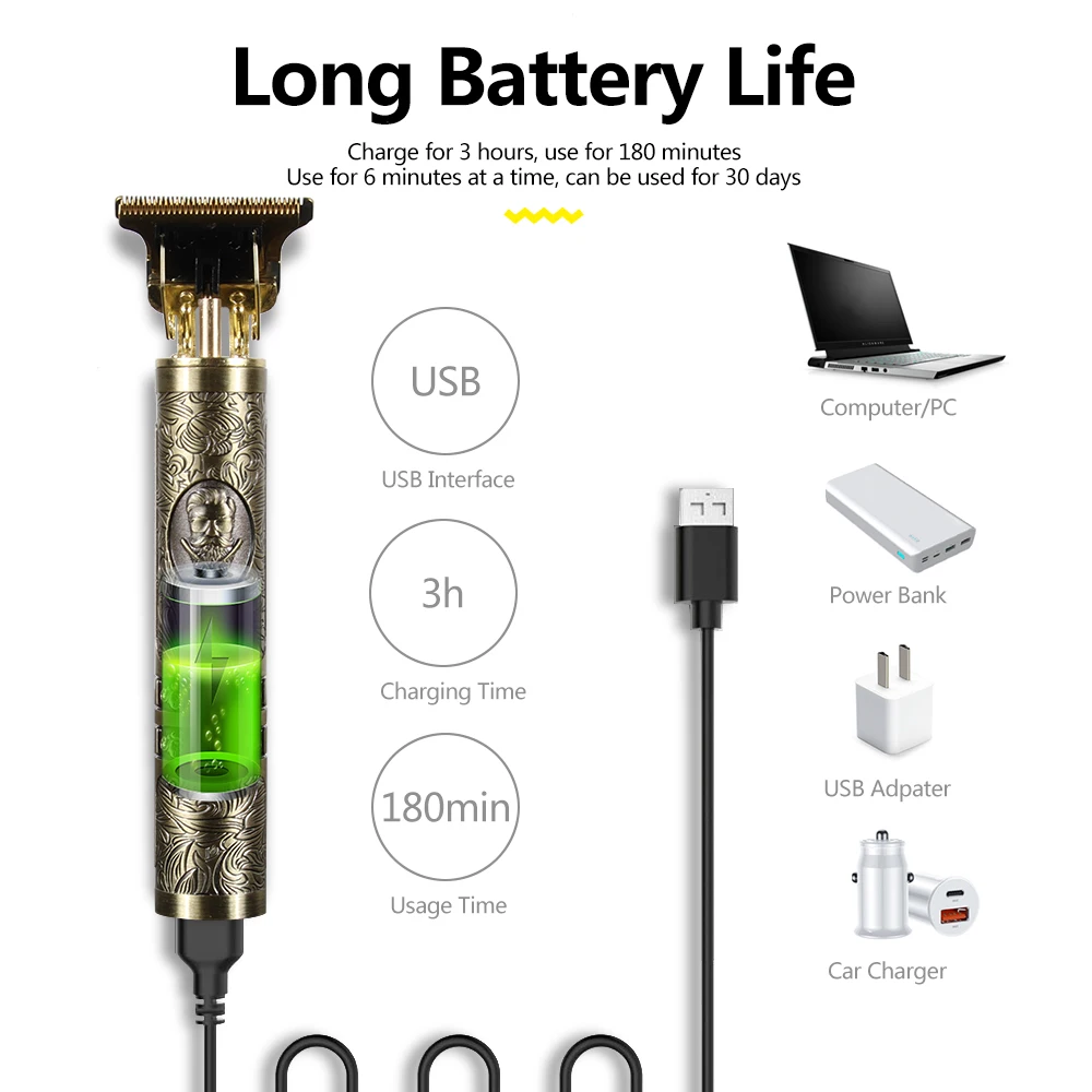 Профессиональная электрическая машинка для стрижки волос, мужской триммер с зарядкой от USB 2021, для бороды