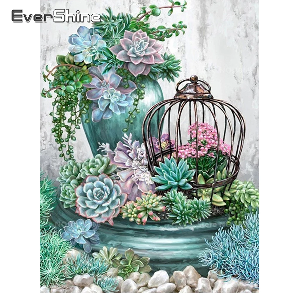 EverShine DIY алмазная живопись сад полная Алмазная вышивка живописная мозаика суккуленты Стразы Набор для вышивки крестиком подарок ручной работы