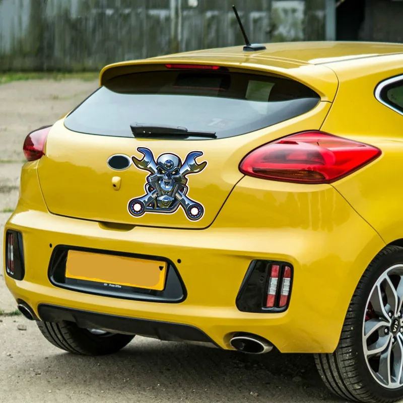 3D интересный металлический скелет, череп, металлический инструмент для ремонта, яркие автомобильные наклейки, автомобильная фотография, KK14 * 13 см