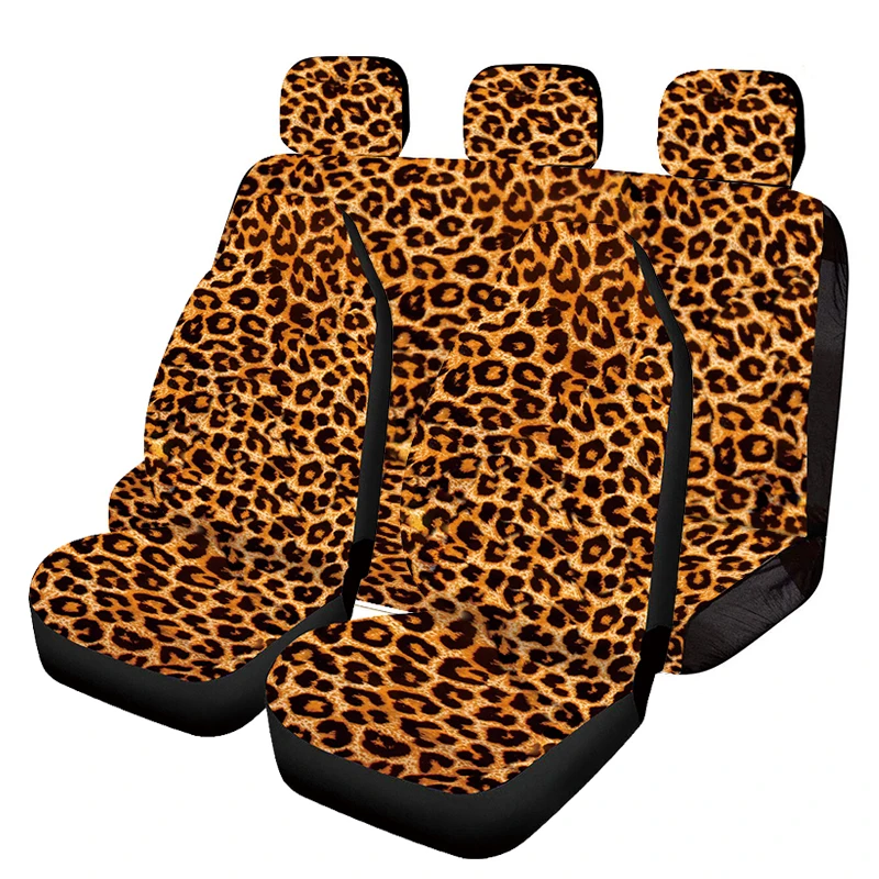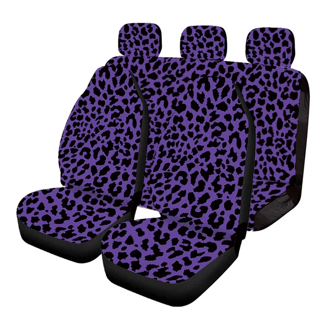Чехлы на сиденья автомобиля Aimaao, полный комплект с фиолетовым леопардовым принтом, аксессуары для салона автомобиля, седана, внедорожника, Vw