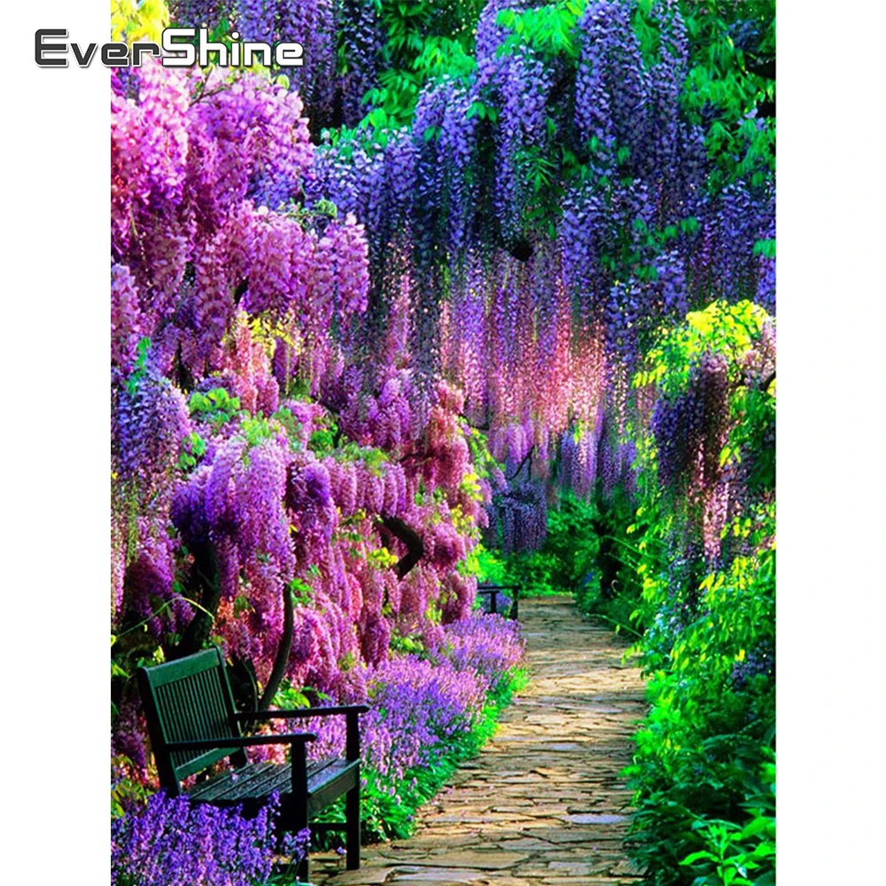 EverShine Алмазная картина для сада DIY полностью квадратная Алмазная вышивка живописный 5D цветок изображение мозаики стразами ручной работы хобби