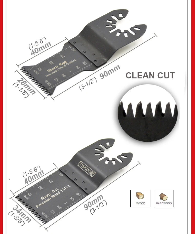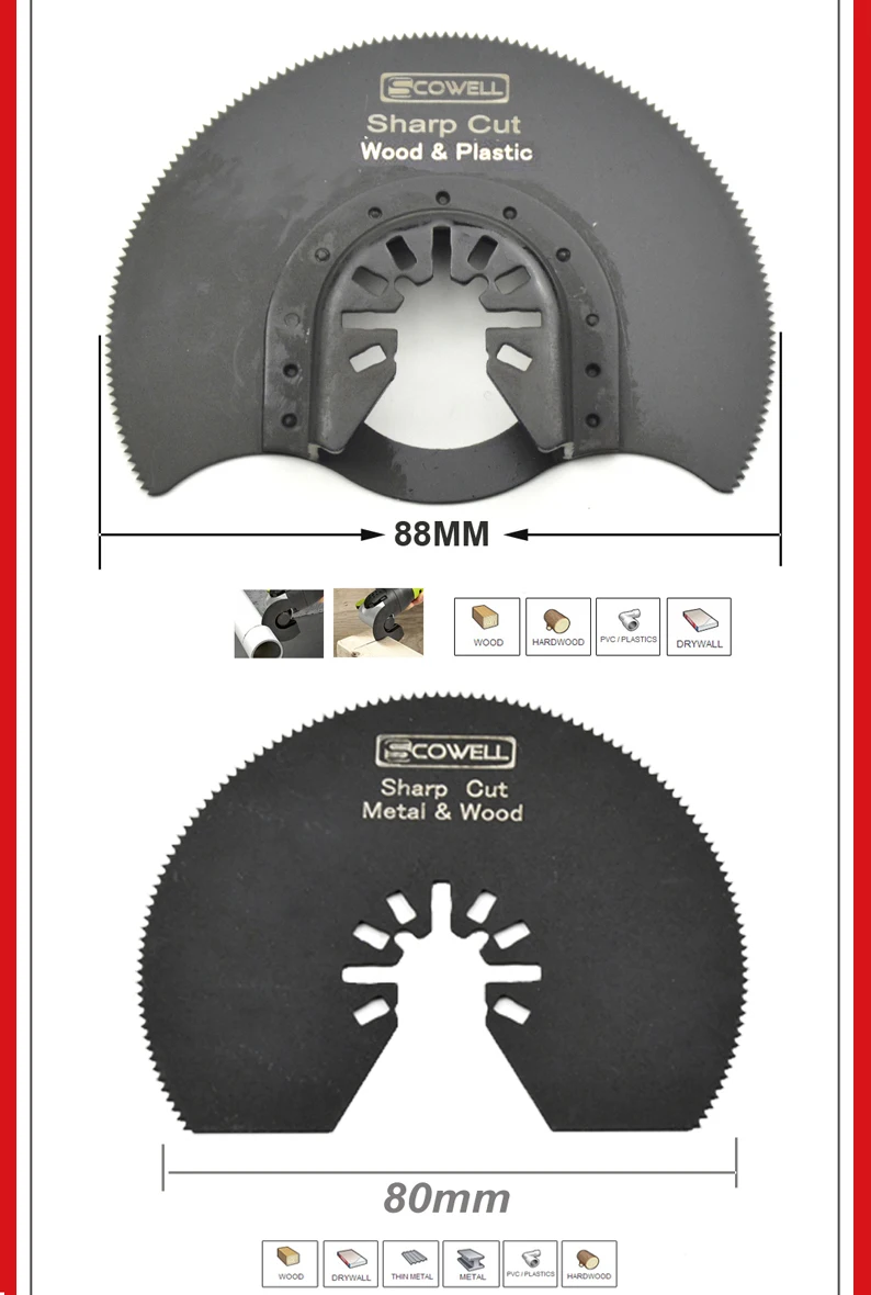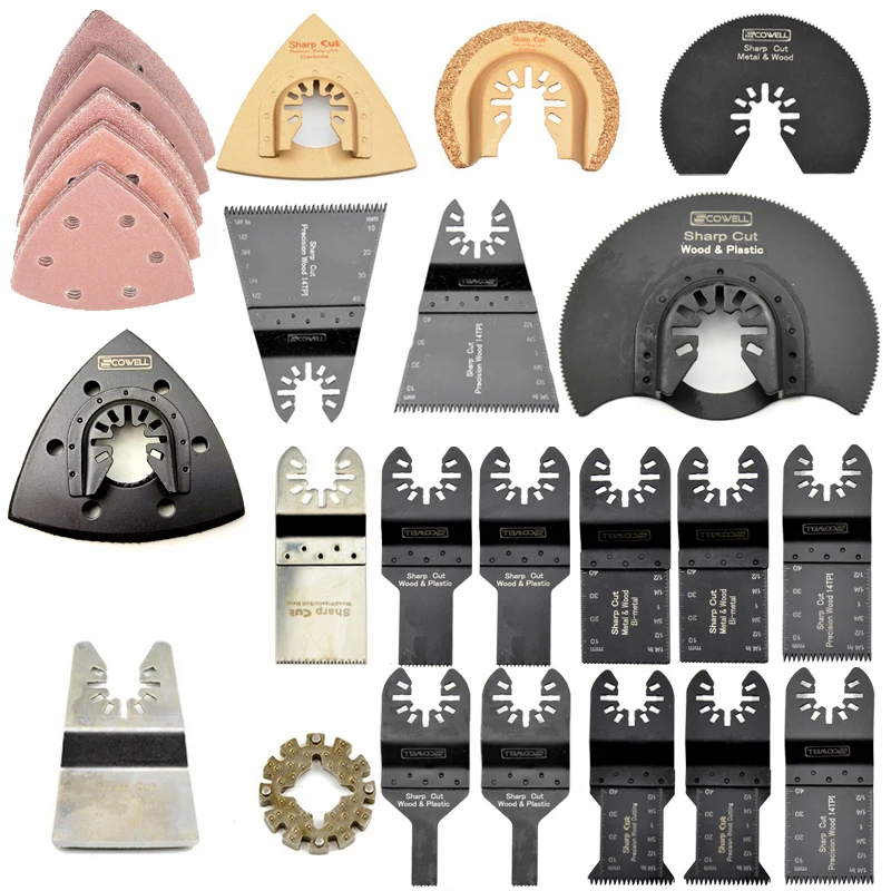 SS пильный диск:Глубина резания: лезвие пилы SS 40 ммИспользование продукта: пилы SS для всех деревянных, Гипсокартонных и пластиковых материалов. H igh Качество и скорость резки, также можно использовать для мягкого металлического Scaping для удаления старой краски, остатков клея, Ковров, подпольных и силиконовых или акриловых соединений Твердосплавная пила/распильник:Твердосплавная пила для вырезания образцов плиточных соединений. Также для резки слотов в штукатурке, пористого бетона и аналогичных строительных материалов, а также для очистки и перемотки стыков палубы. Не подходит для очень твердых эпоксидных смол или цементных соединений, экономически эффективный алтемативный для алмазных инструментов. Твердосплавный шпатель для шероховатых шлифовальных наполнителей, клейкий материал, бетон, камень и дерево HCS пильный диск:Глубина резки: 40-50 ммИспользование: стандартные зубья для дерева, гипсокартона и пластиковых материалов, высокое качество и скорость. Также можно использовать для мягкого металла Биметаллические Осциллирующие пильные диски:Глубина резки: 40-50 ммИспользование продукта: биметаллизированные с тонкими зубьями HSS для листового металла до 2 мм, профили alminium, медные трубы, а также для армированного стекловолокном пластика и других твердых пластмасс. Чрезвычайно прецизионные, которые очень легко контролировать с особенно тонким профилем резки Точный японский зуб Осциллирующий пильный диск:Использование продукта: японские зубья для всех деревянных материалов, гипсокартона и мягких пластмасс. Самая быстрая скорость резки и максимальная точность Алмазная пила/RaspИспользование: для вырезания мрамора, эпоксидной смолы и просачивания суставов. Отличный срок службы. Также подходит для очень твердой эпоксидной смолы или цементного соединения. Правильный выбор для частого использования и сложных работ Лезвие для пилы HSSИспользование: Металлические зубцы HSS для листового металла. Также для пластмасс, армированного стекловолокном пластика, дерева, шпатлевого сплава и медных/медных сплавов. Вырезает на поверхностьВ настоящее время наши пильные диски не подходят для Fein Supercut,Fein и Bosch Starlock Осциллирующие аксессуары для нескольких инструментов!