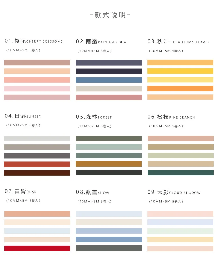 5 шт.компл. симпатичная однотонная Васи-лента, Маскировочная лента,...