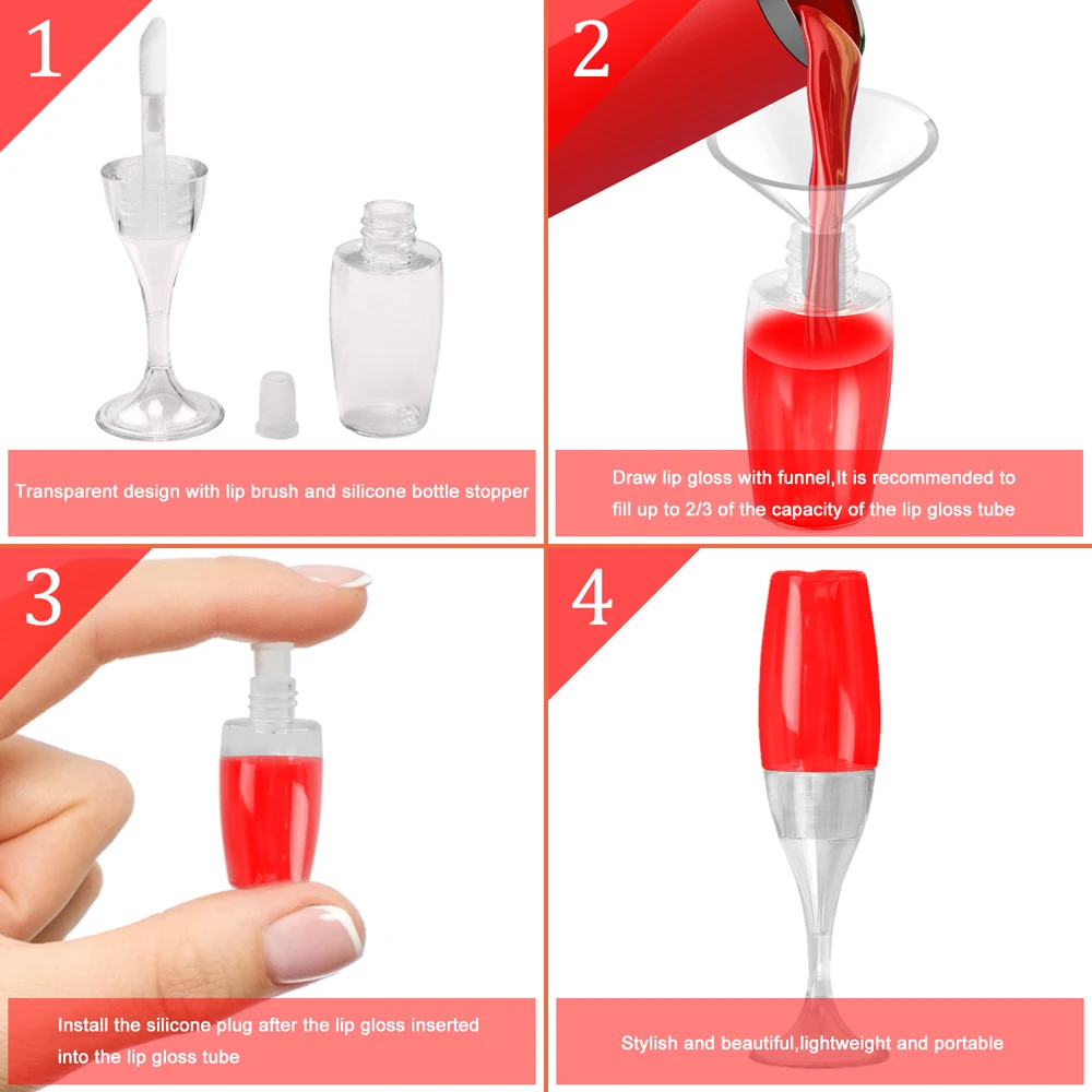 Пустые тюбики для блеска для губ 5 шт., креативные многоразовые пластиковые мини-бутылочки в форме миниатюрный винный бокал, контейнер для глазури для губ, дорожные аксессуары