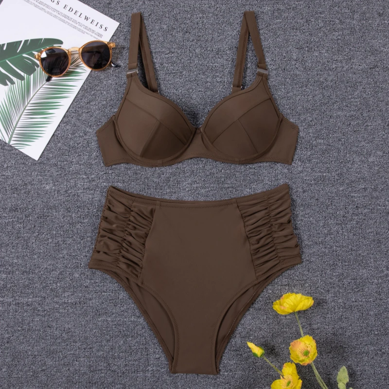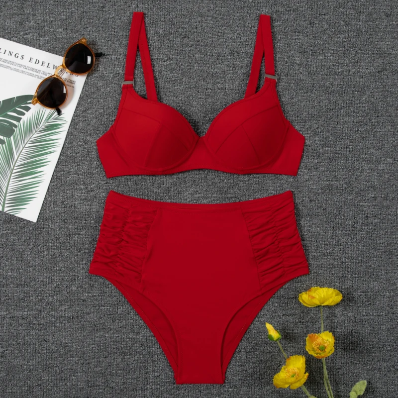 Соблазнительные бикини 2022, купальники, женский купальник пуш-ап, пляжная одежда с высокой талией, однотонный купальный костюм для женщин, комплект бикини, купальные костюмы