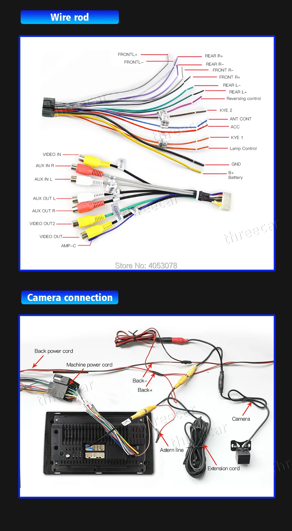 15. Внешний вид товара и соединение кабеля, подключение задней камеры.