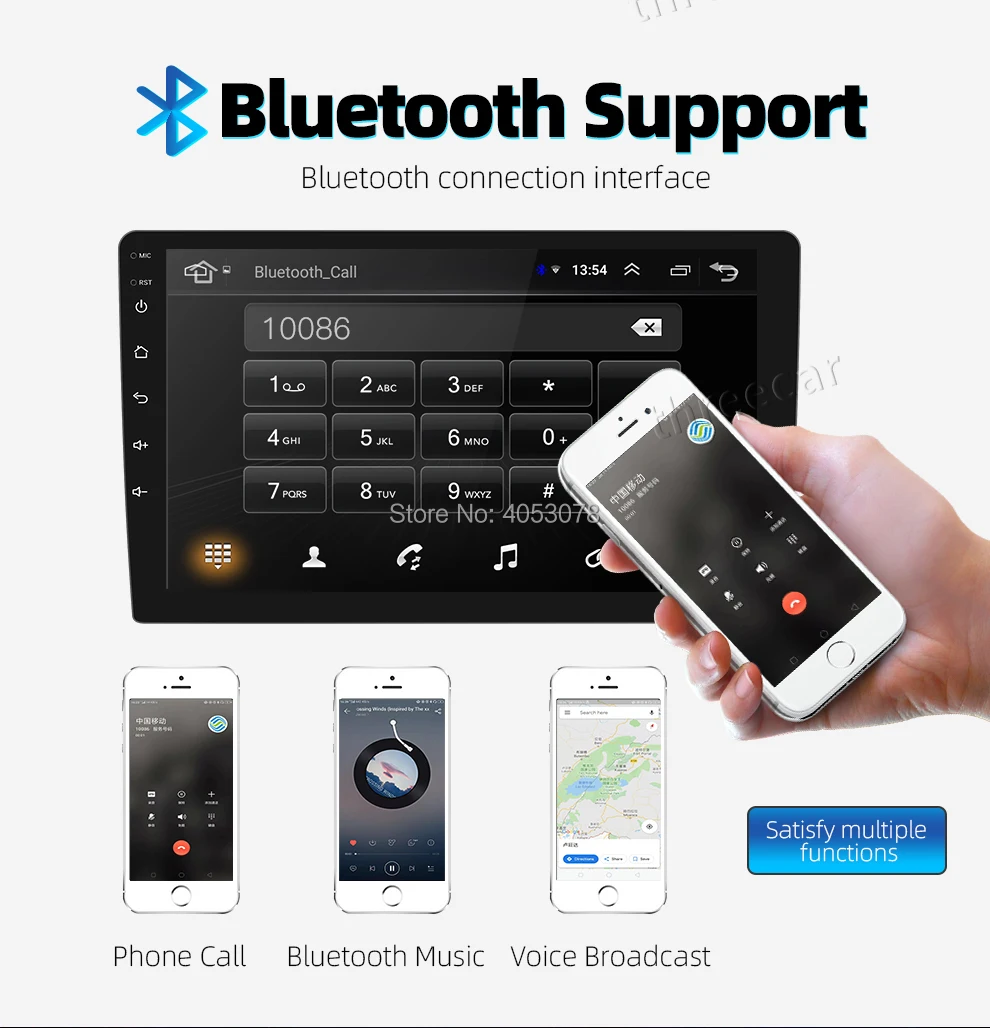 4. Функция Bluetooth, поддержка телефонного звонка, музыки, голоса по Bluetooth, подключение вашего смартфона по функции Bluetooth, вы можете совершать и принимать звонки непосредственно с самого автомобильного DVD со встроенным микрофоном и динамиком. Сделайте ваши руки свободными для безопасного вождения.