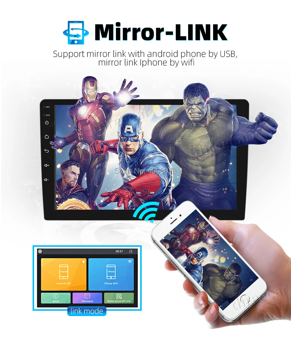 5.Mirror link, вы можете подключить телефоны iphone и android к вашему телефону, такой как GPS-навигация, музыка, игры, видео. Делает подключенное Вождение проще, безопаснее и приятнее. Для телефонов Android, он может подключаться и управлять устройством по USB, для iphone, может подключаться по Wi-Fi.