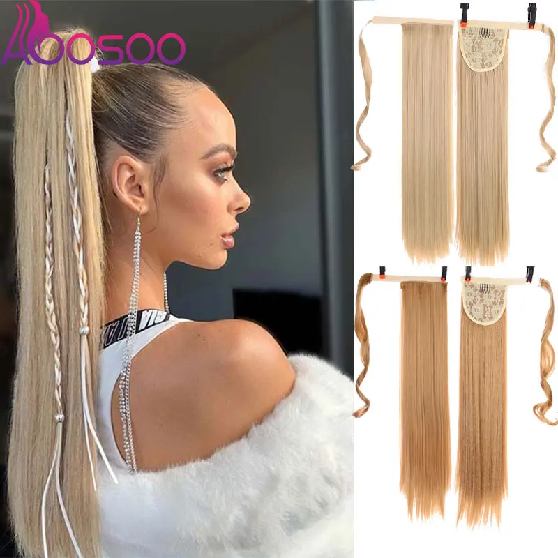 AOOSOO длинные прямые накладные волосы на клипсе для наращивания конского хвоста термостойкие синтетические накладные волосы с конским хвостом