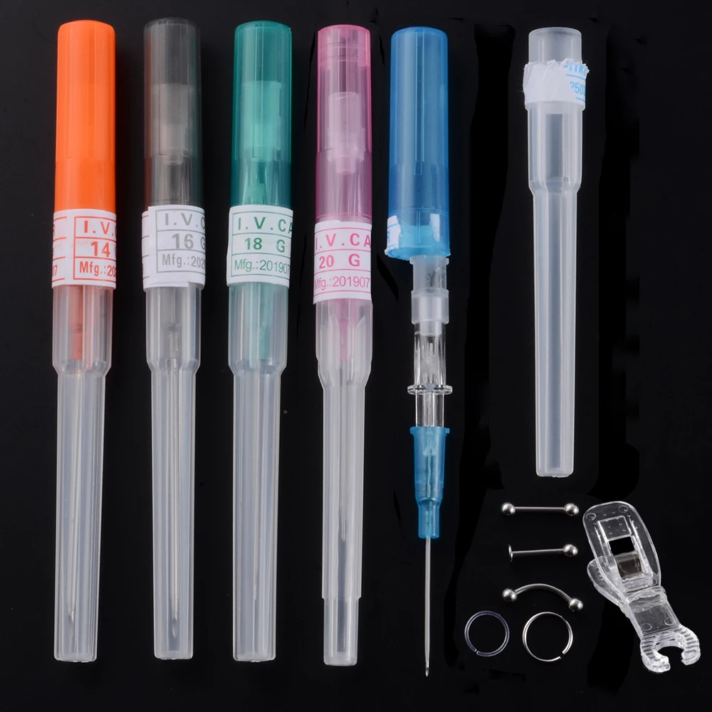 Хирургическая сталь I.V. Иглы для пирсинга катетера, стерильные иглы для пирсинга, ювелирные изделия, зажим, 14 г16 г18 г20 г22 г