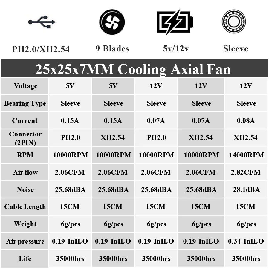 5 шт. 25x25x7мм Вентилятор охлаждения