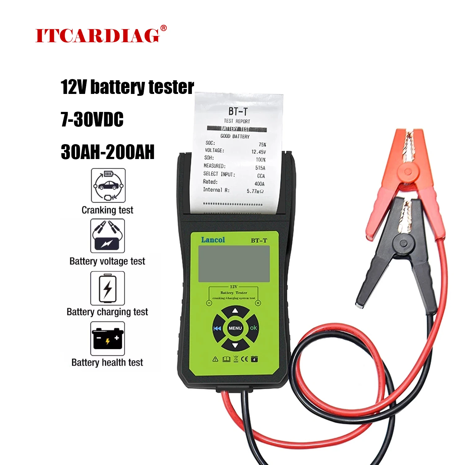 Lancol BT-T 12В цифровой тестер для автомобильного аккумулятора анализатор 12В автоматический инструмент для зарядки с принтером