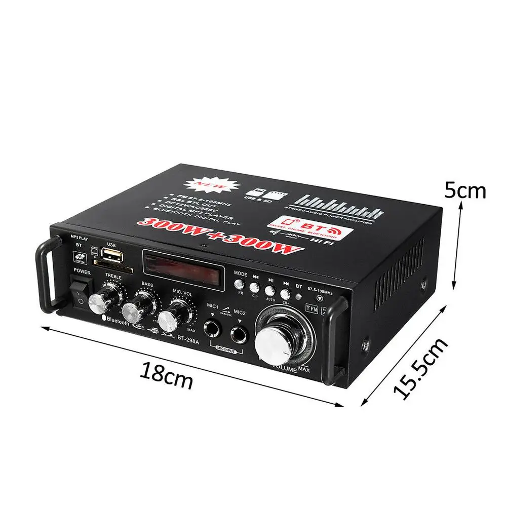 600 Вт усилитель для ЖК-дисплея HIFI аудио стерео Bluetooth FM 2CH AMP Автомобильный домашний USB SD MP3-плеер с функцией дистанционного управления