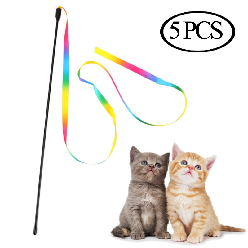 Палочки для кошек 5 шт., двусторонняя цветная Радужная лента, забавные игрушки-палочки для кошек, Интерактивная палочка для домашних животных, игрушки