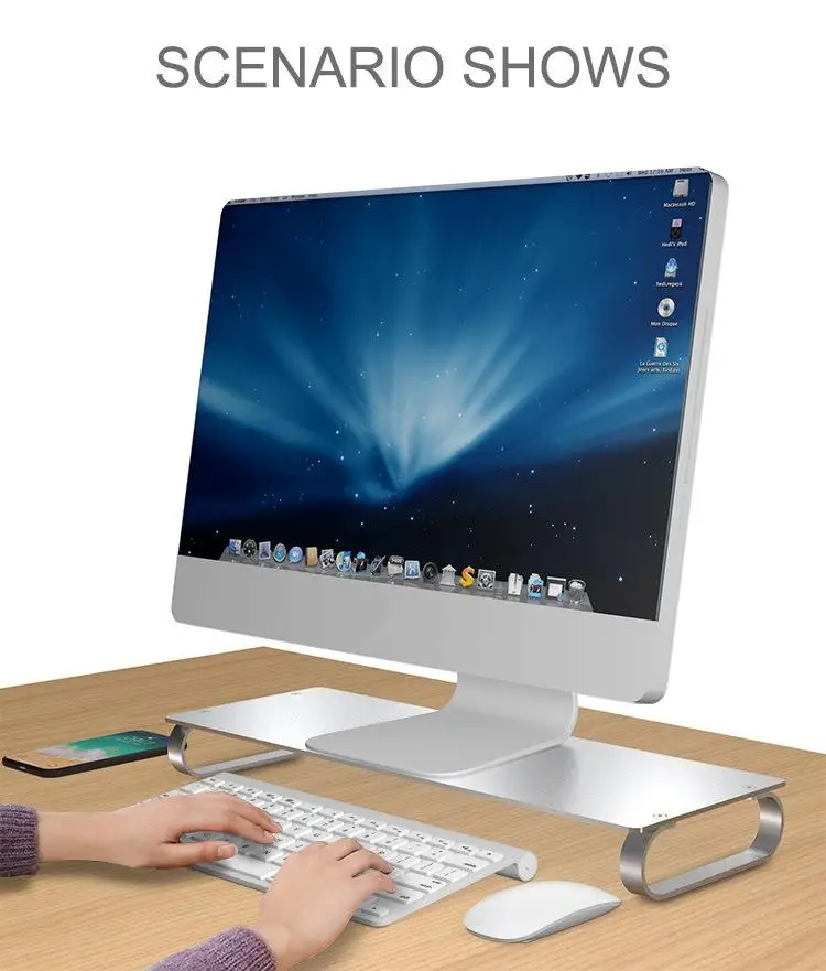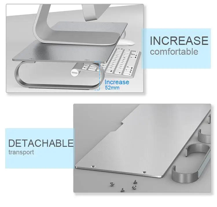 Кронштейн для монитора из алюминиевого сплава, подставка для монитора, увеличивающая пространство для хранения, основание для ноутбука и настольного компьютера, прочная конструкция, гладкая поверхность