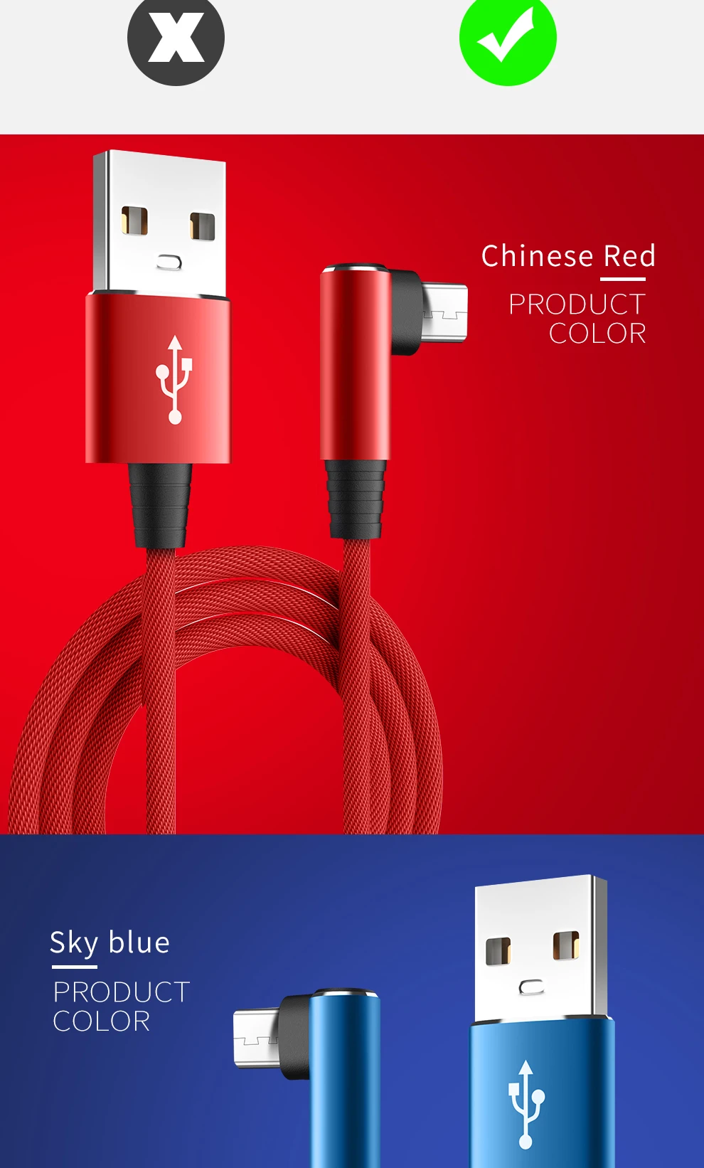 Кабель USB Micro Usb, угловой, 90 градусов, для Samsung, Xiaomi Мобильный телефон