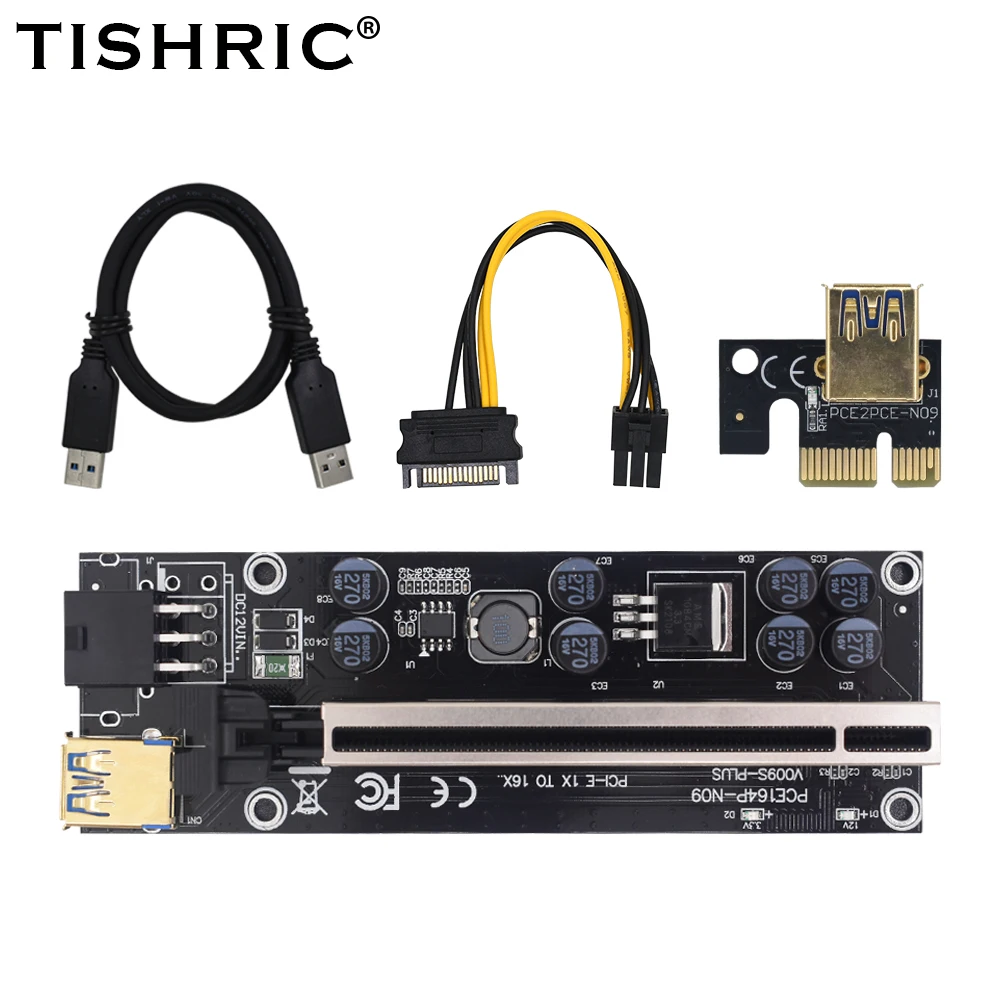 TISHRIC 6 шт. VER009S Plus Райзер-карта PCI 6Pin 009S Майнер для ма...