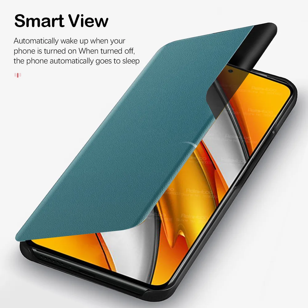 Для Xiaomi Poco M3 чехол Smart View кожаный чехол для телефона с от...