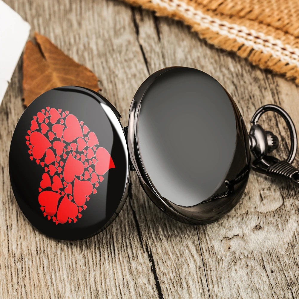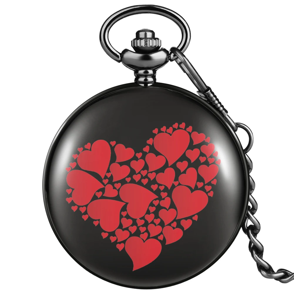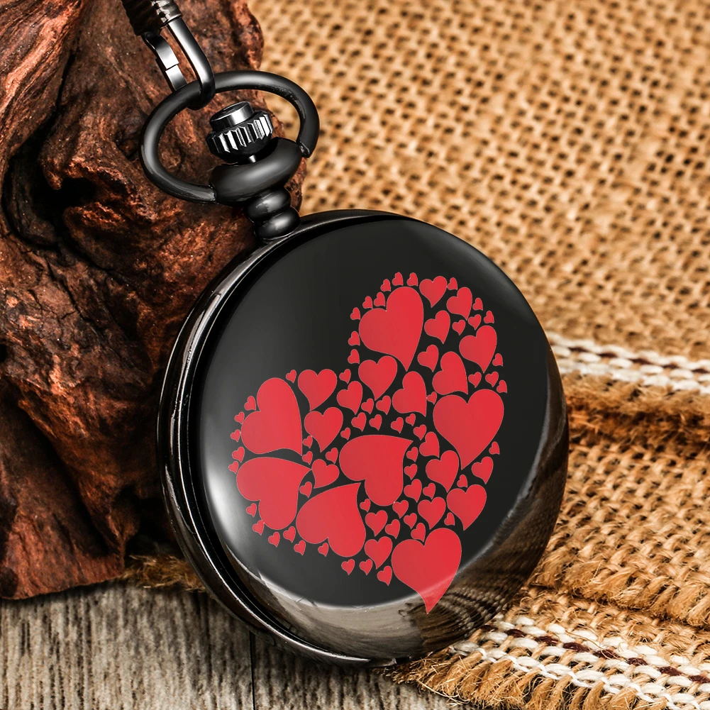Карманные часы на цепочке с изысканным рисунком сердца, черные гладкие часы с откидной крышкой и цифровым циферблатом, портативное ожерелье с подвеской, часы для пар