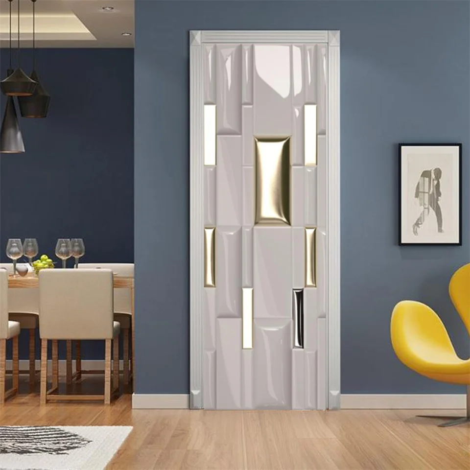 2 шт.компл. современные 3D клейкие ПВХ дверные наклейки для спальни, гостиной, Декоративные плакаты, обои, съемные настенные наклейки, домашний декор