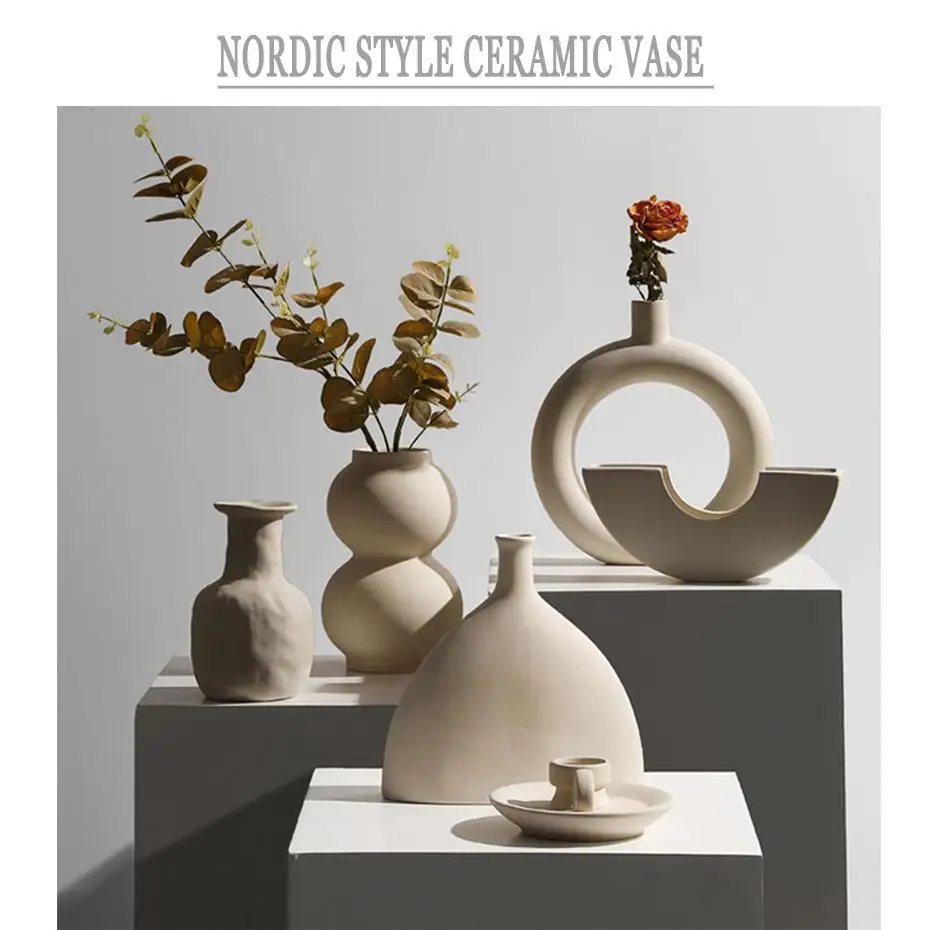 Керамическая ваза в скандинавском стиле, украшение для дома, белый вегетарианский керамический цветочный горшок, художественная ваза, украшение для дома, ремесленный подарок