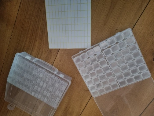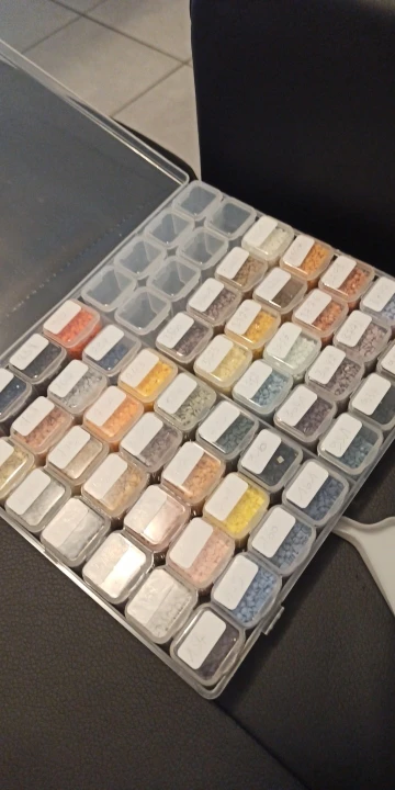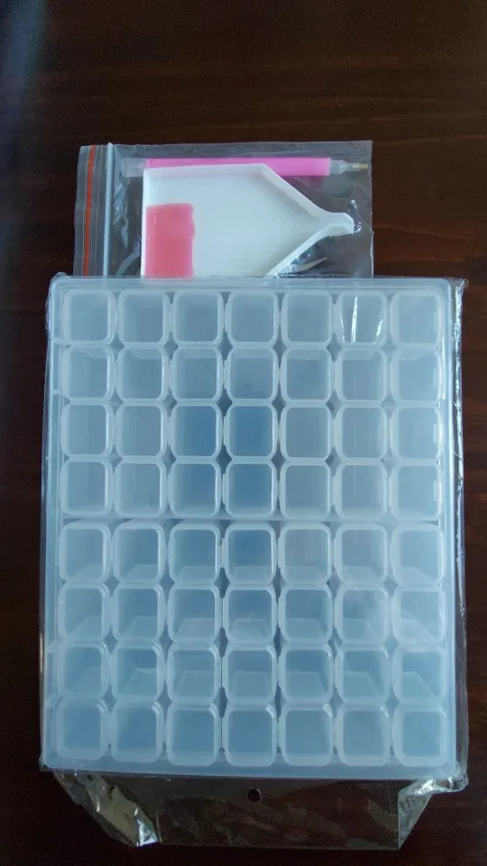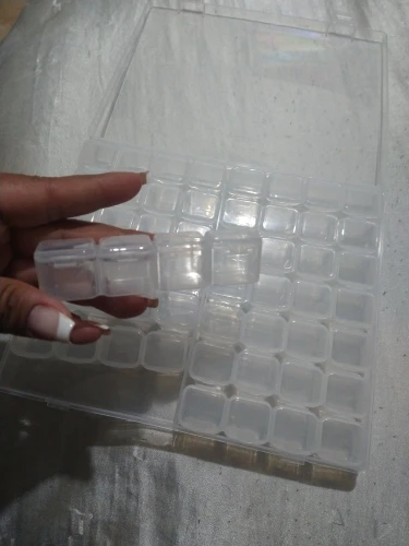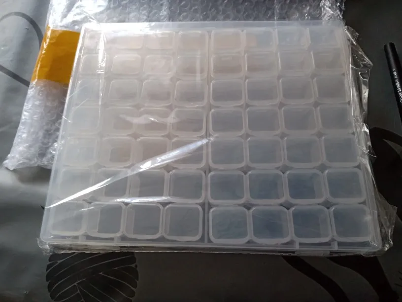 Коробка очень большая, она будет использоваться для круглых бриллиантов, так как у меня есть только один холст с круглыми бриллиантами. На данный момент все коробки хорошо закрываются; Чтобы увидеть со временем ..