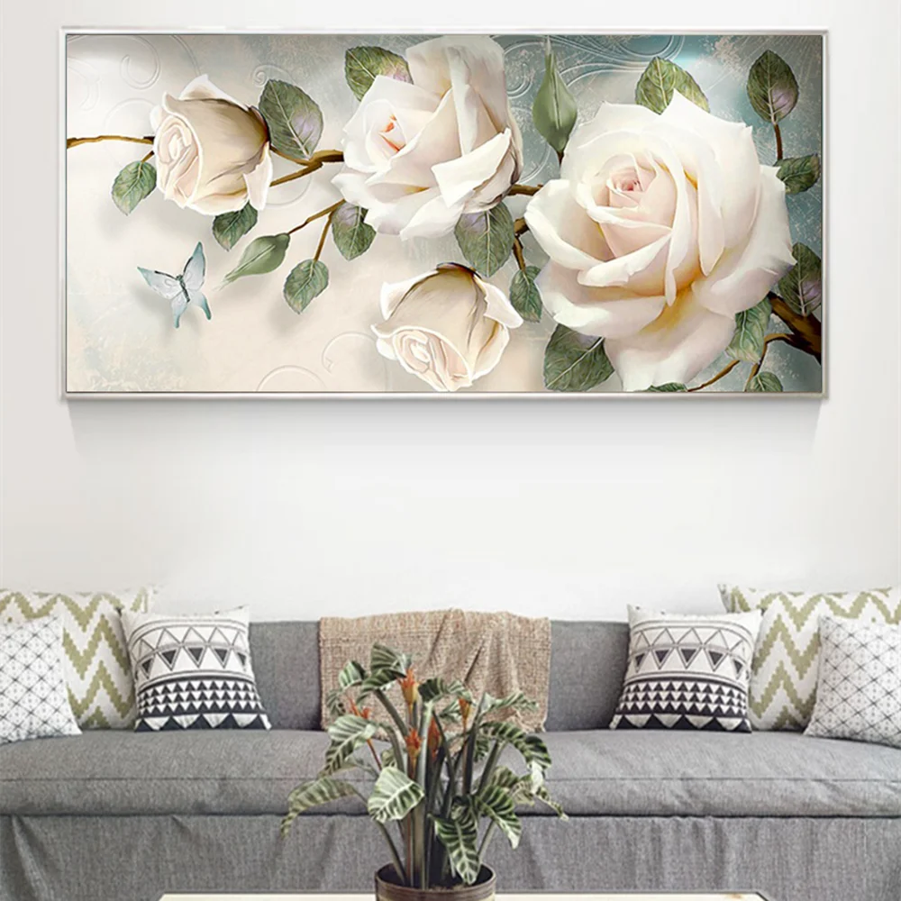 Алмазная живопись, узор розовая роза, декоративная картина, стразы,...