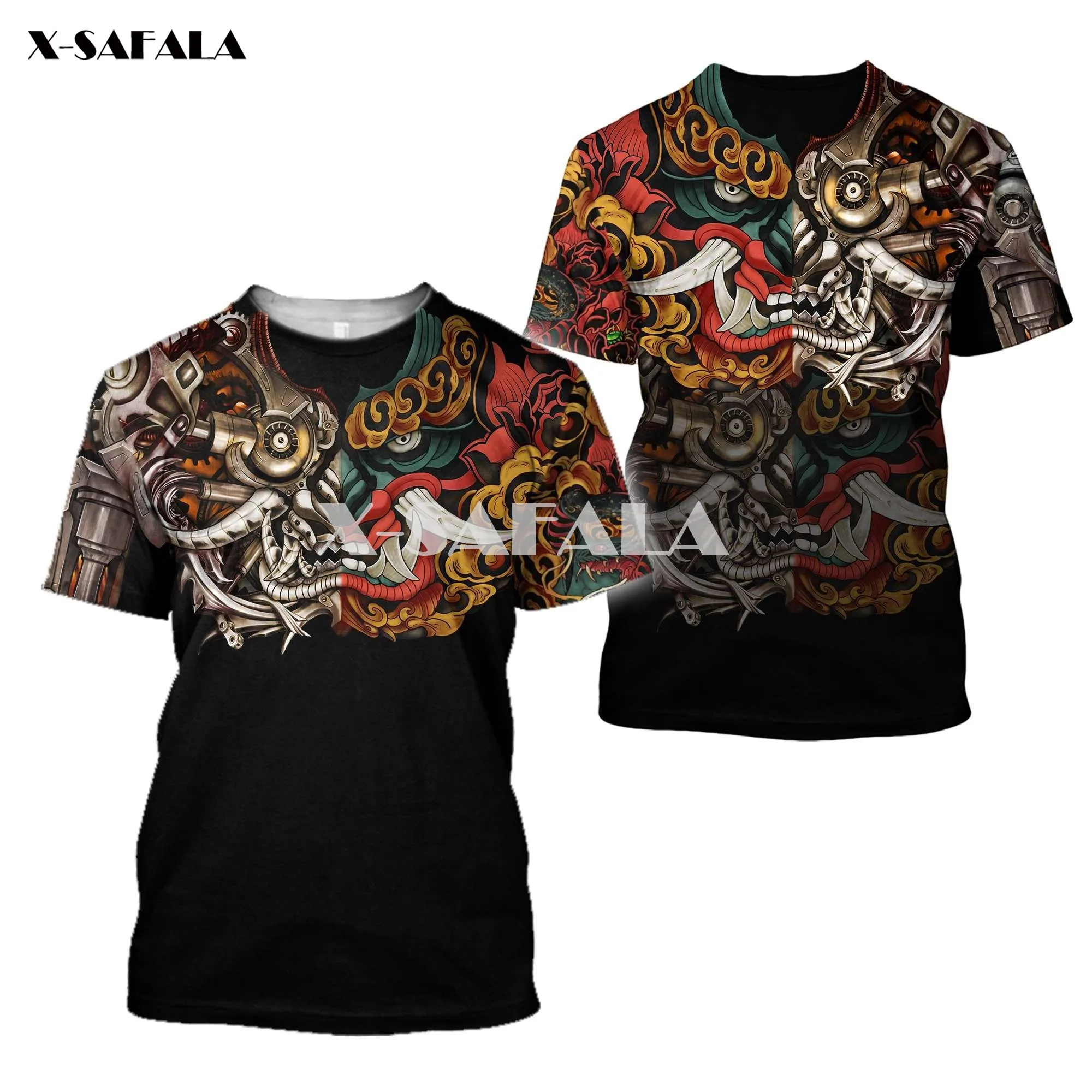 Мужская армированная маска самурая с татуировкой, футболки с 3D-принтом, летняя модная футболка с коротким рукавом, в стиле Харадзюку, панк, для женщинунисекс-7