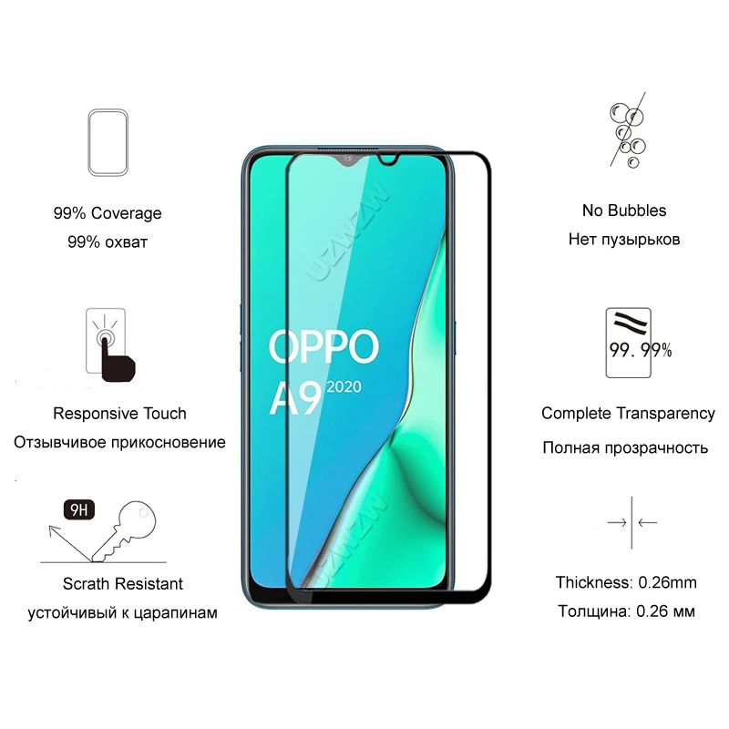 Стекло с полным покрытием для Oppo A9 (2020)A11x, защита экрана, защитное закаленное стекло, Взрывозащищенная и пленка для объектива камеры