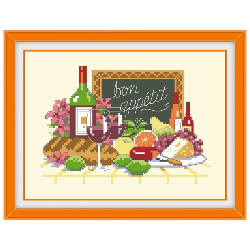 Набор для вышивки крестиком с фруктами, вином, 18ct, 14ct, 11ct