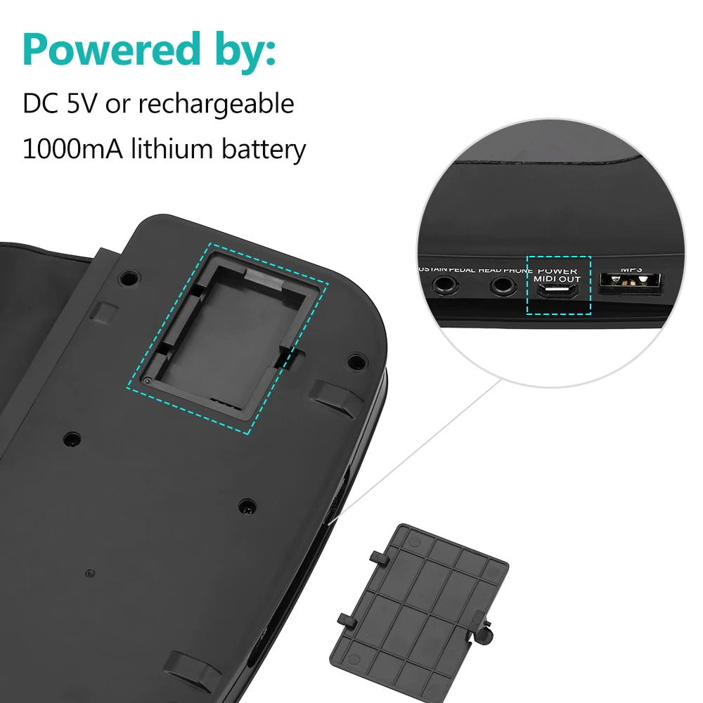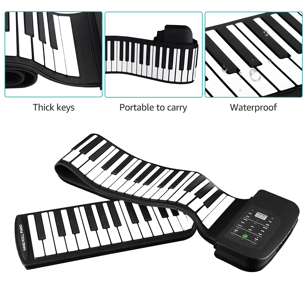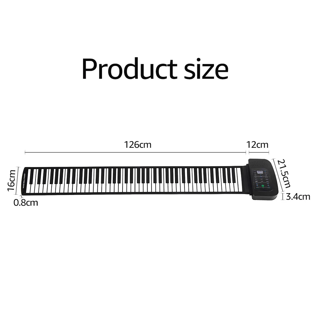 Это рояль ручной прокатки является портативным продуктом с утонченным дизайном конструкции. Высота черного ключа выше, чем у белого ключа. Проводящая пленка внутри может защитить статическое электричество. Переключение питания автоматически. Имеет функции поддержки и вибрации.Особенности:Стандартные 88 клавиш моделирования (A1-C9), запись, воспроизведение, автоматическая функция тональной модификации.С разъемом наушников/динамиков/MP3/DC 5V/MIDI OUT.140 видов тон, 128 видов ритмов, 30 демонстрационных песен.Цифровой дисплей, поддерживает мастер регулятор громкости, регулировку темпа и выбор режима (тон и ритм).Функции записи, OPP, воспроизведения и обучения.Однопальцевый аккорд и многопальцевый аккорд.Старт/стоп, синхронизация, вставка функциональной клавиши, демонстрационная клавиша песен.Характеристики:Модель: PA88Материал: силиконЦвет клавиш: черный + белыйКлавиатура: 88 клавишДемонстрационные песни: 30 песенТрил: мелодии Киса с вибрирующим эффектомТона: 140 видовДисплей: светодиодный дисплейТип аккордов: однопальцевый аккорд и многопальцевый аккордПитание: 5 В постоянного тока или перезаряжаемая литиевая батарея 1000 мАMainbody Размеры: 21,5*12*3,4 см/8,5*4,7 * 1.3in (Д * Ш * Г)Размер клавиатуры: 126*16*0,8 см/49,6*6,3 * 0.3in (Д * Ш * Г)Вес изделия: 1235 г/43,6 унцийПосылка Размеры: 28,5*23*9,5 cm/11,2*9,1 * 3.7in (L * W * H)Вес посылка: 1757 г/61,98 унцийПосылка:1*88 клавиш складной фортепиано1 * Адаптер питания (штепсельная Вилка европейского стандарта)1 * Литий-ионный аккумулятор1 * USB кабель1 * Руководство пользователя (на английском языке)Примечание:Для нормального использования и обслуживания, пожалуйста, внимательно прочитайте руководство пользователя перед использованием.