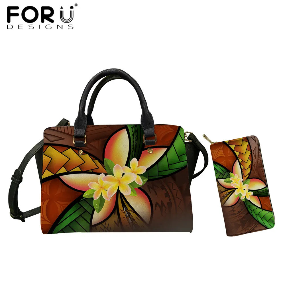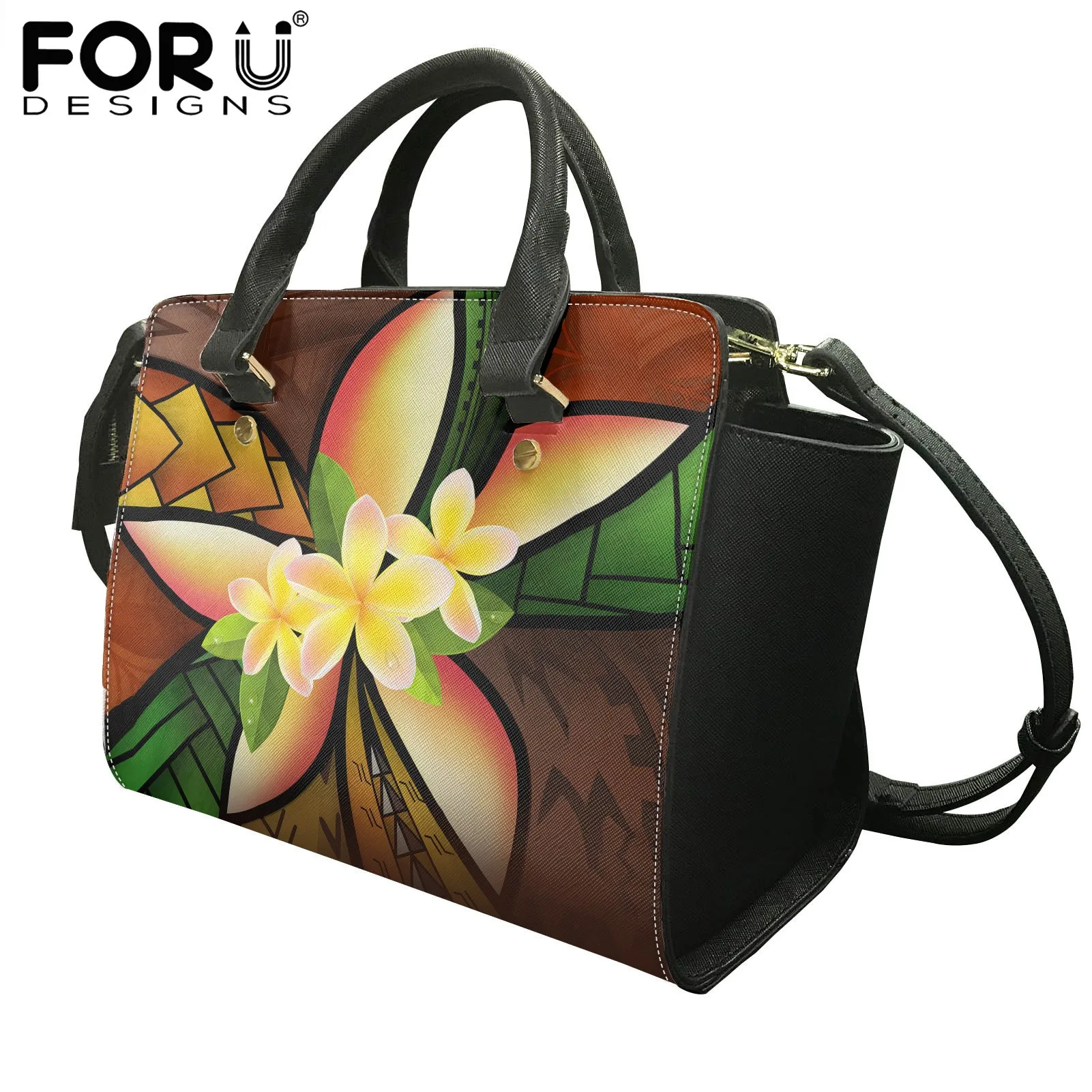 Женская кожаная сумочка и кошелек FORUDESIGNS, полинезийская племенная Плюмерия с цветочным принтом, повседневные большие сумки с верхней ручкой, женские сумки-тоуты