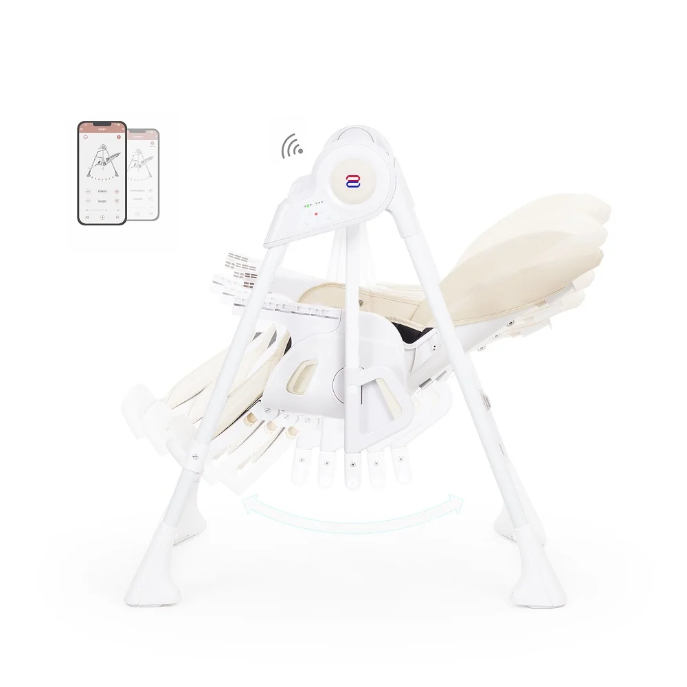 Отличительной особенностью стульчика является функция электронного качания, которую можно устанавливать в 3 режимах. Имеется возможность устанавливать таймер отключения с разными временными интервалами (15, 30, 45 минут). Стульчик может подключаться к телефону по Bluetooth, что позволит включить звуковое сопровождение малышу.