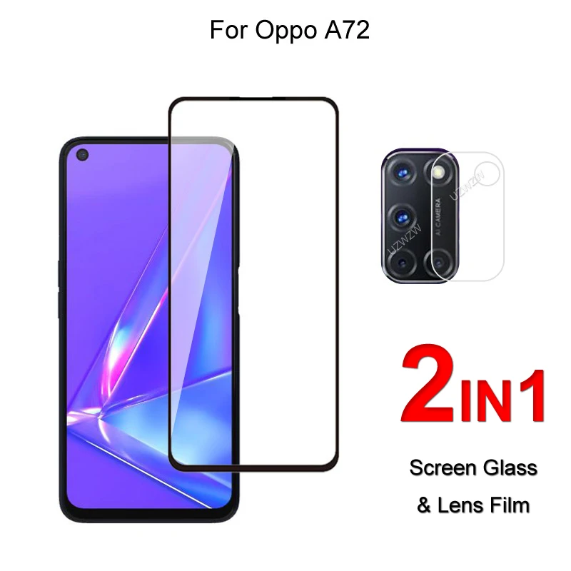 Стекло с полным покрытием для Oppo A72, защита экрана, защитное закаленное стекло, Взрывозащищенная и пленка для объектива камеры