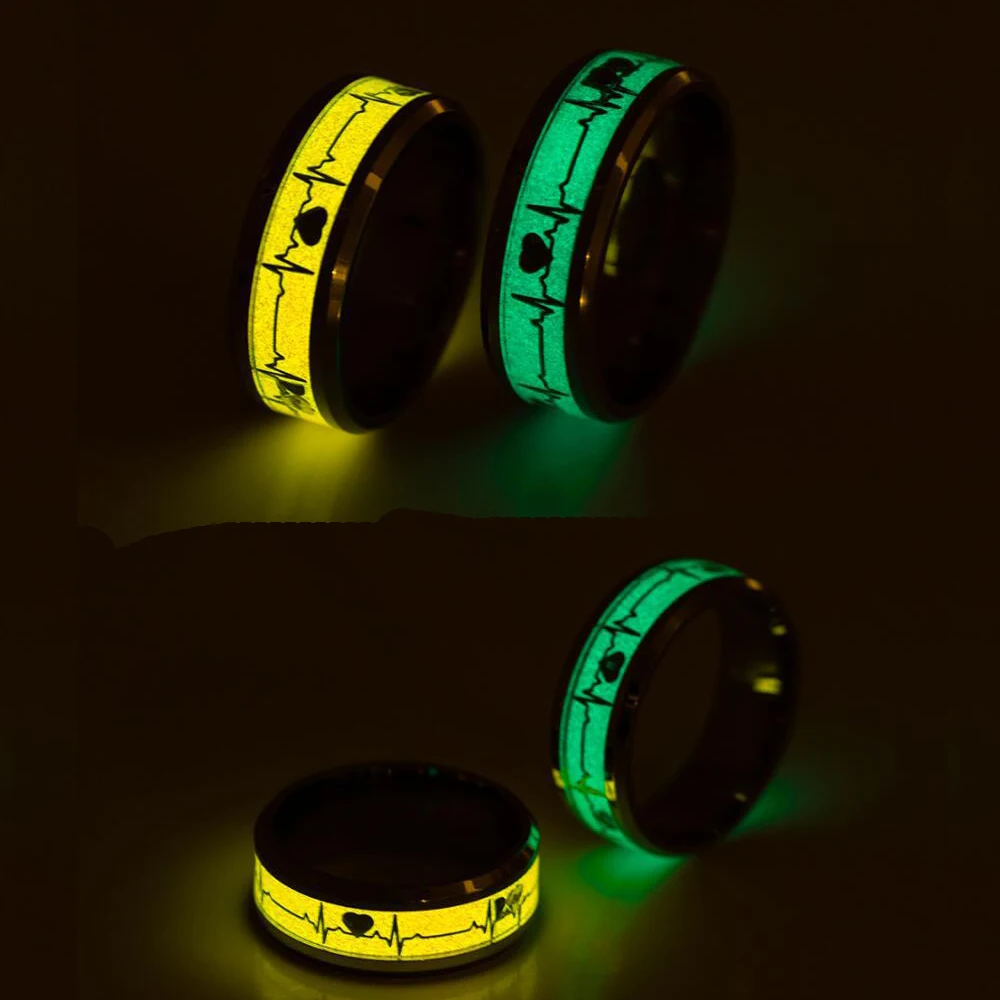 Модное светящееся кольцо в виде сердца с ЭКГ, ФЛУОРЕСЦЕНТНОЕ кольцо...