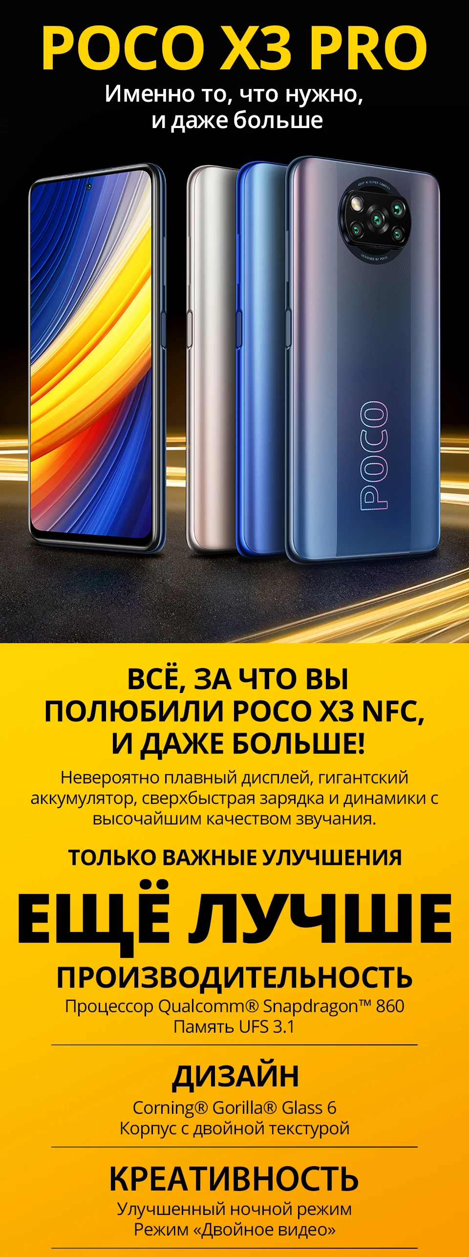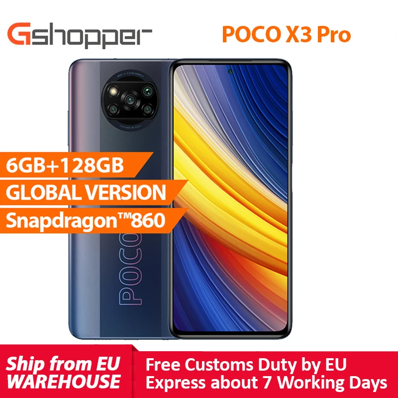 Xiaomi RU POCO X3 Pro глобальная версия EAC 6 ГБ 128 Snapdragon 860 смартфон 120 Гц DotDisplay 5160 мАч, 33 Вт NFC четырехъядерный камера AI