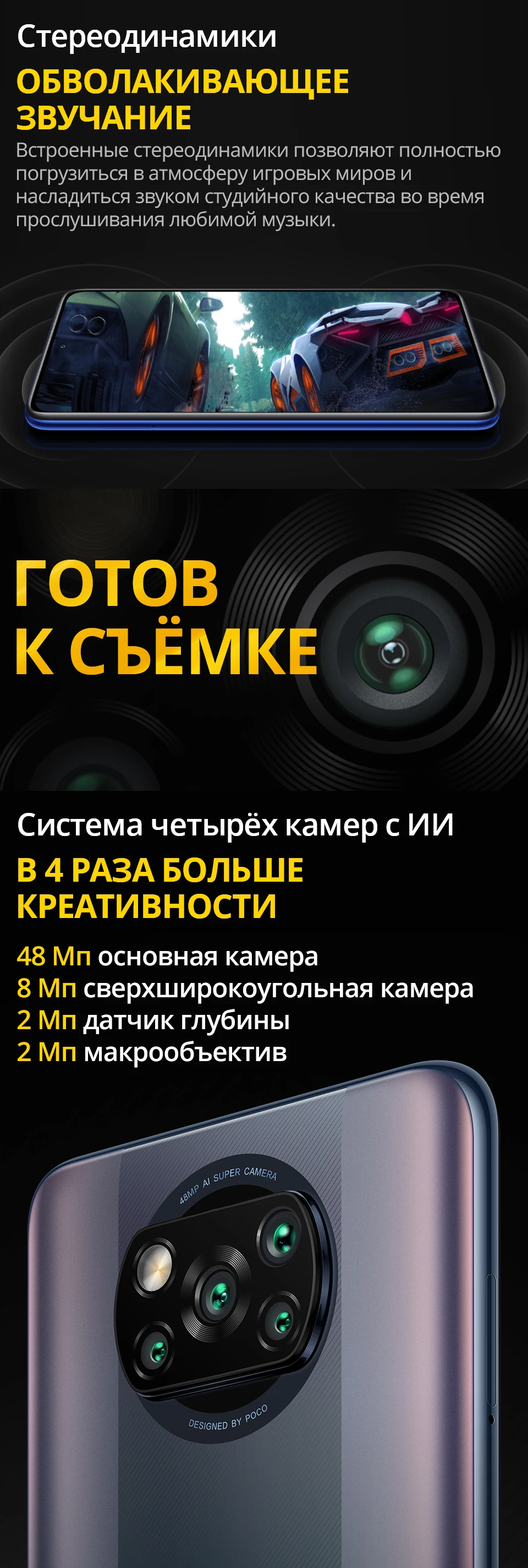 48MP Quad сзади Камера