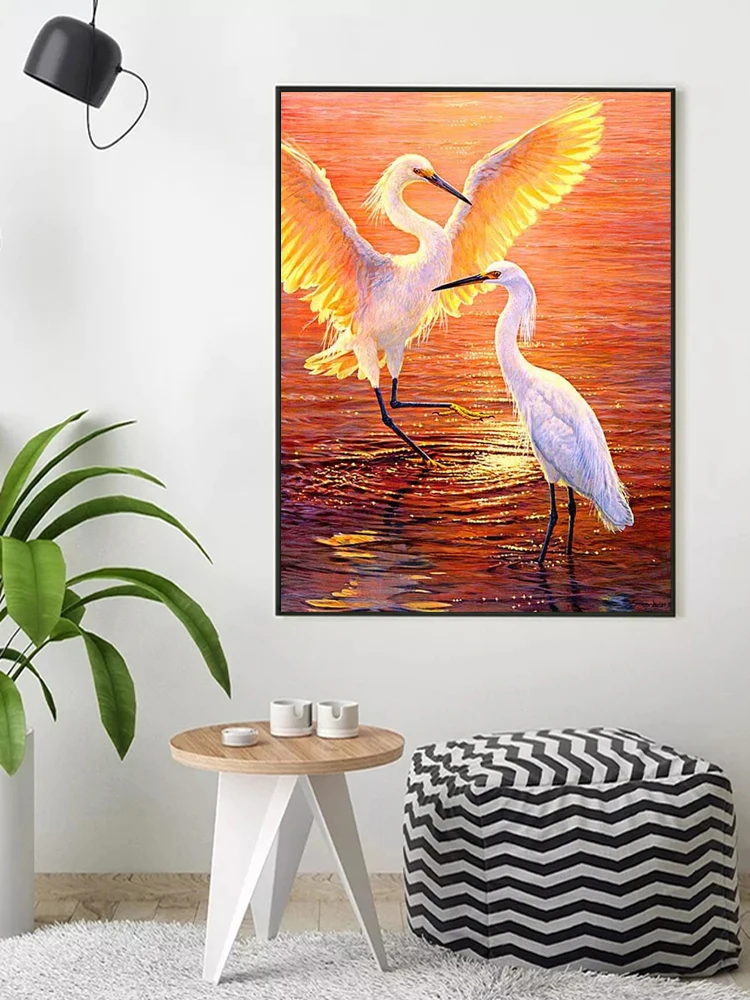 Алмазная живопись, Белый журавль на закате, полноразмерная круглая вышивка крестиком, животное, украшение для дома, вышивка из бисера, мозаика 211038