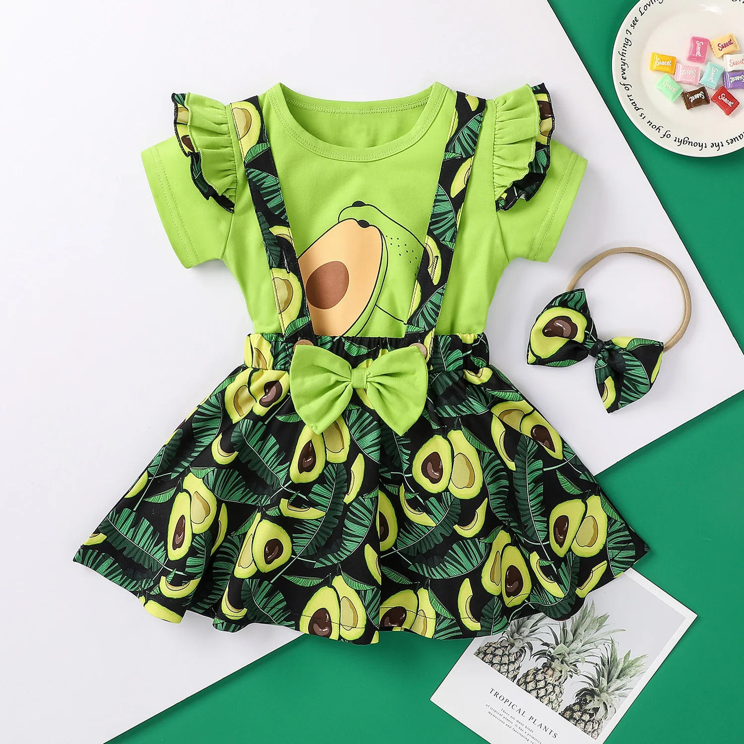 Citgeett летняя детская юбка для девочек, комплект из трех предметов, костюм футболка с короткими рукавами и принтом, штаны с бантом; Юбка на подтяжках; Повязка на голову, комплект одежды для детей