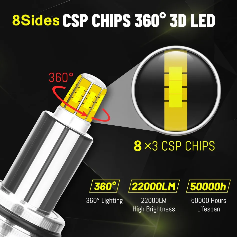 H1 светодиодный H7 22000LM H8 H11 HB3 9005 HB4 9012 HIR2 D1S D2S D3S D4S H4 8 сторон 120 Вт 3D светодиодный фары высокой мощности Canbus 360 градусов диод авто лампа