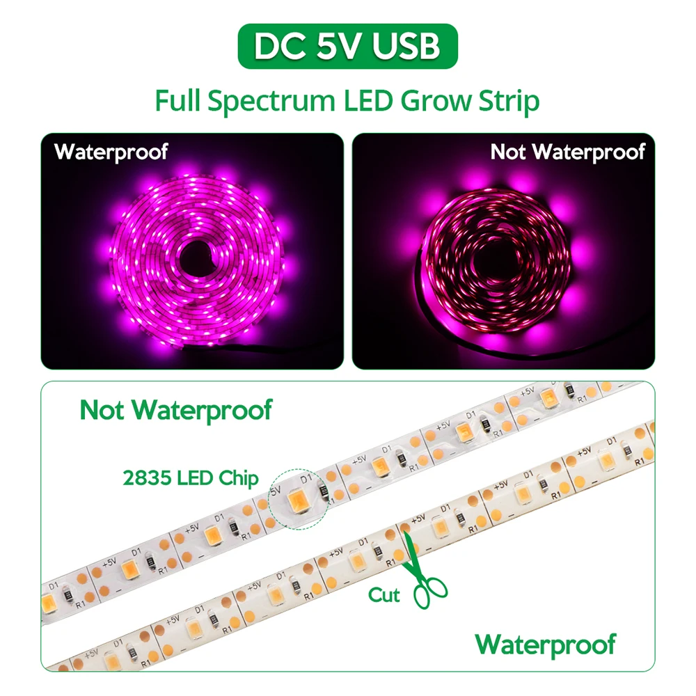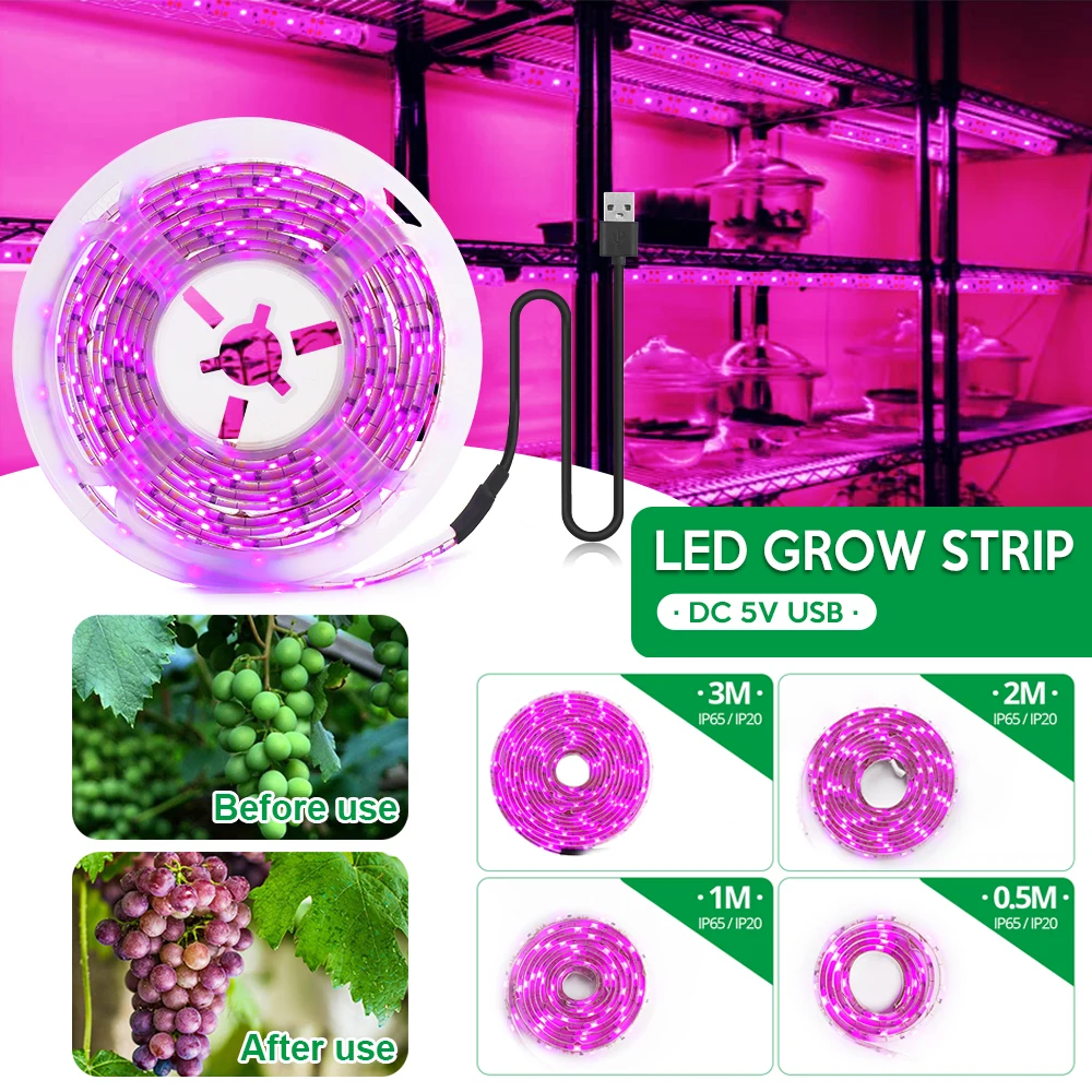 Светодиодный ная фитолампа полного спектра для выращивания растений, лента с USB для освещение для растений светильник для выращивания цветов, саженцев