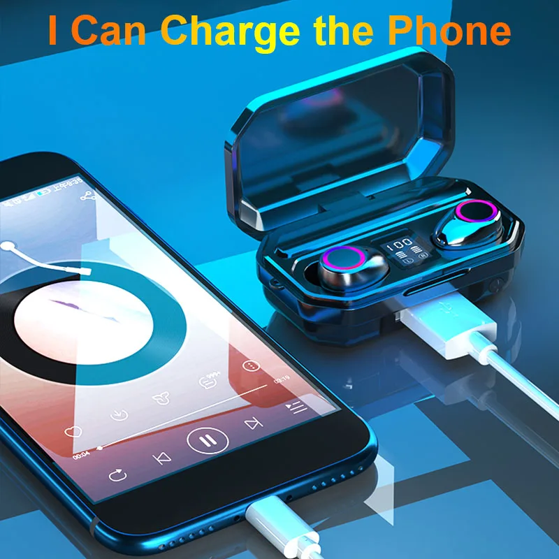 TWS беспроводные наушники 2000 мА портативное зарядное устройство Bluetooth наушники с фонариком для iphone 13 12 11 8 7 6 samsung Lotus Спортивная гарнитура