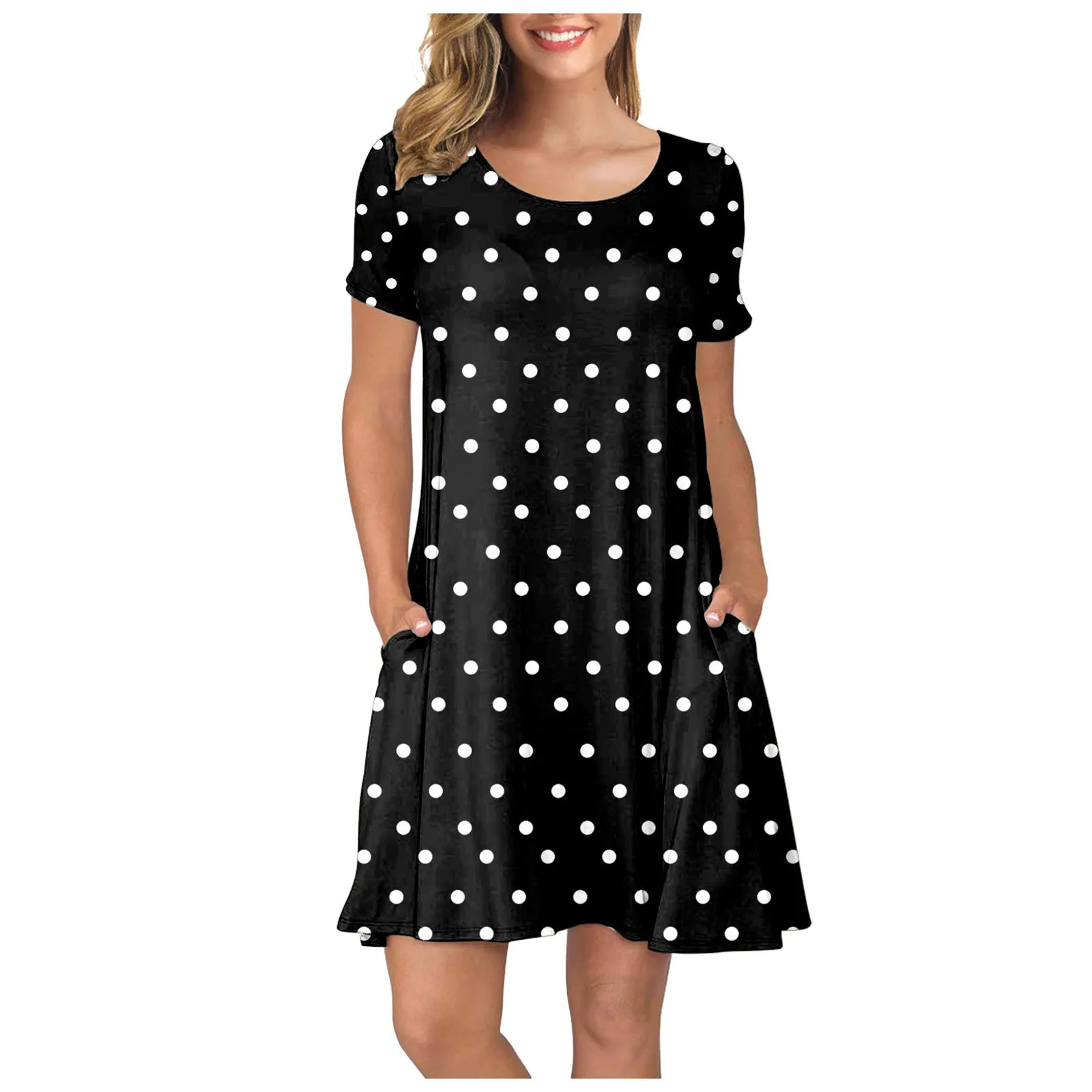 Женское винтажное Платье в горошек с карманами, повседневный мини-сарафан с коротким рукавом и круглым вырезом, летнее Платье 40 #