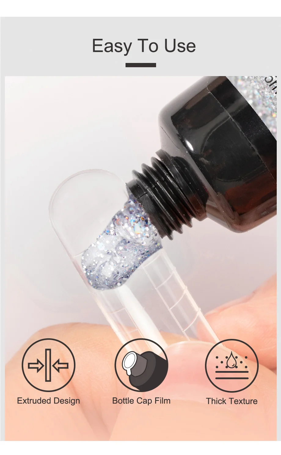 Качество полигель понравилось. В лампе не течет. Единственное, лучше брать с крупными блёстками, смотрится более интересно нежели с мелкими.